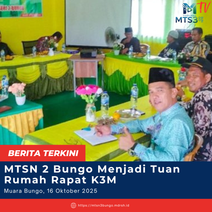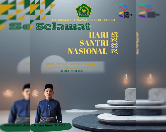 Kepala Madrasah Tsanawiyah Negeri (MTsN) 3 Bungo turut menghadiri upacara peringatan Hari Santri Nasional yang diselenggarakan di Kabupaten Bungo. Kegiatan ini merupakan bentuk penghormatan atas kontribusi para santri dalam sejarah...