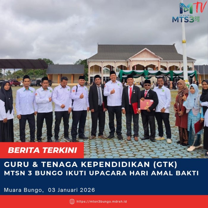 Pulau batu � Mengawali kalender pendidikan di tahun 2026, Madrasah Tsanawiyah Negeri (MTsN) 3 Bungo menggelar rapat dinas perdana yang berfokus pada Pembagian Tugas Guru dan Tenaga Kependidikan (PTK). Kegiatan...